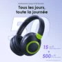 Avec une capacité de batterie de 500 mAh, profitez de la musique sans pause pendant 50 heures. Une charge de 15 minutes vous offre jusqu’à 500 minutes de lecture grâce à la technologie AniFast™.