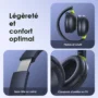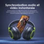 Le microphone positionné près de la bouche et équipé d’algorithmes de réduction de bruit de haute qualité filtre efficacement les bruits de fond, améliorant la clarté de vos appels.
