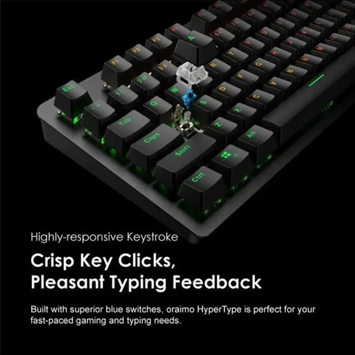 Construit avec des commutateurs bleus de qualité supérieure, oraimo HyperType est parfait pour vos besoins de jeu et de frappe rapides.