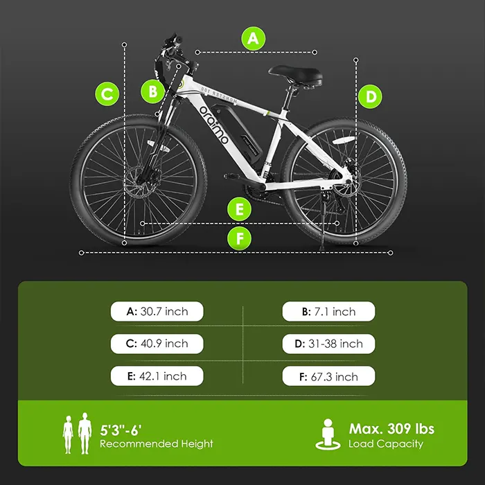 Paramètres du produit oraimo Monster 100 26″ 350W Moteur BAFANG Vélo Électrique: