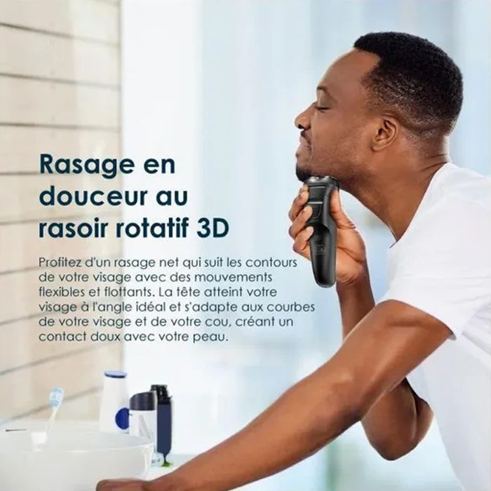 Profitez d’un rasage net qui suit les contours de votre visage avec des mouvements flexibles et flottants. La tête atteint votre visage à l’angle idéal et s’adapte aux courbes de votre visage et de votre cou, créant un contact doux avec votre peau.
