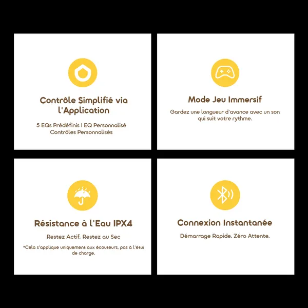 Chaque écouteur ne pèse que 4 g et s’adapte parfaitement à votre oreille, offrant des heures d’écoute dans un confort absolu.
