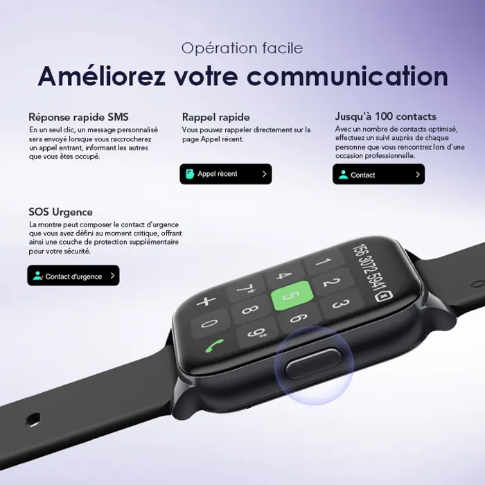 Passez des appels directement sur votre poignet, sans avoir besoin de prendre votre téléphone en main. Grâce au Bluetooth monopuce intégré, vous êtes maintenant en connexions plus rapides et stables tout autant avec une consommation faible de batterie.