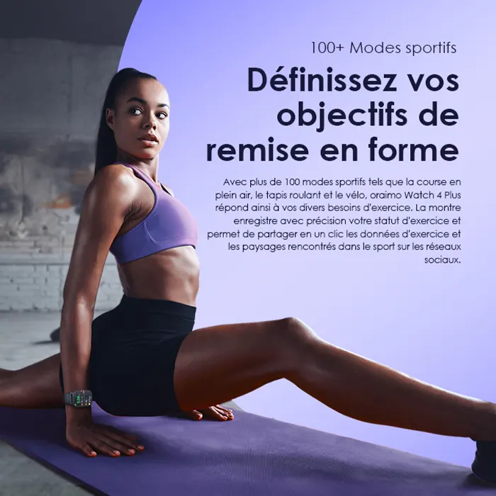 Avec plus de 100 modes sportifs tels que la course en plein air, le tapis roulant et le vélo, oraimo Watch 4 Plus répond ainsi à vos divers besoins d’exercice. La montre enregistre avec précision votre statut d’exercice et permet de partager en un clic les données d’exercice et les paysages rencontrés dans le sport sur les réseaux sociaux.