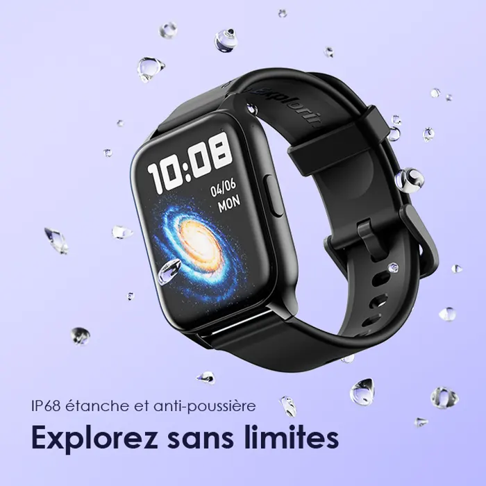 N’ayez pas peur des éclaboussures d’eau ou de la pluie soudaine, car votre montre est bien protégée avec un indice IP68 pour la résistance aux éclaboussures, à l’eau et à la poussière.